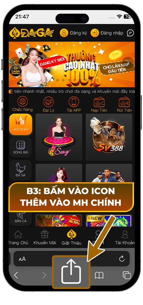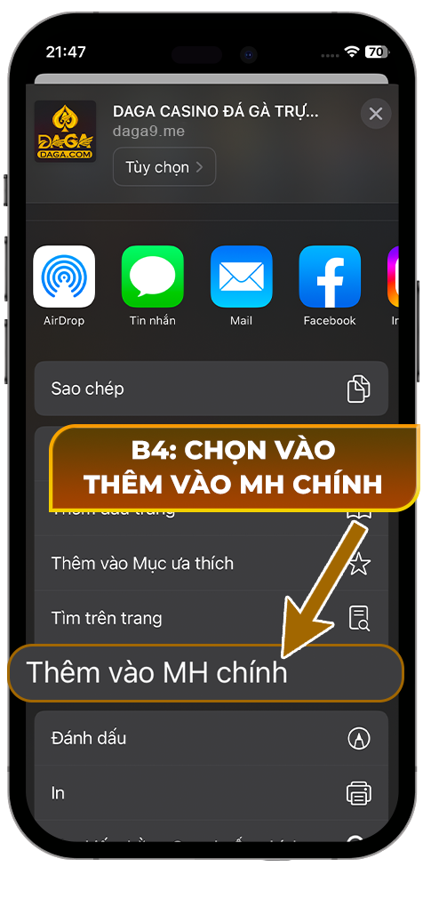 B6: App DAGA ngoài màn hình.
